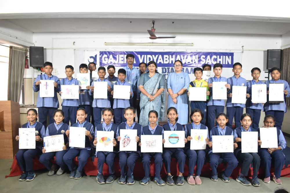 The Primary Section of Gajera Vidyabhavan, Sachin buzzed with excitement as young learners showcased their scientific curiosity during the Science Diagram Competition. The event aimed to develop the scientific temperament of students by encouraging them to explore concepts visually and creatively. The school atmosphere transformed into vibrant science corners where knowledge met creativity.